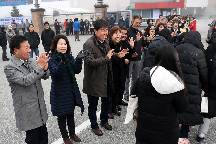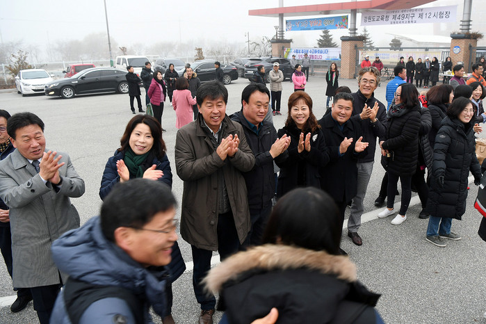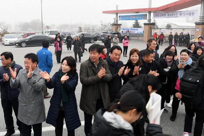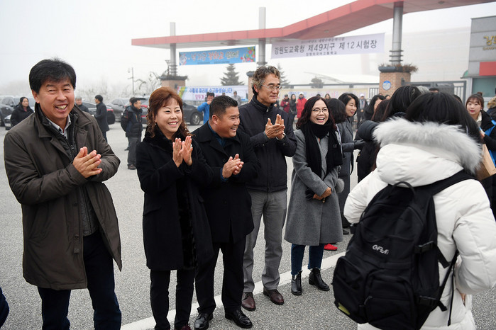 [양구군=세계타임즈 김민석 기자] 2019학년도 대학수학능력시험이 치뤄진 강원외고 정문에서 조인묵 양구군수, 이상건 양구군의회의장 및 의원, 장기묘 교육장, 양구지역 기관단체장, 학생들이 수험생들을 격려했다.