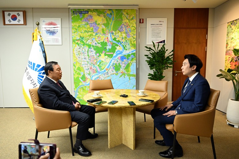 [세종 세계타임즈=이채봉 기자] 임채성 세종특별자치시의회 의장은 19일 최민호 세종시장을 만나 ‘행정수도 세종 완성’ 대선 공약의 실현 방안에 대해 논의했다.