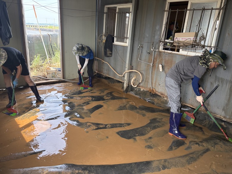 진성수 수산자원과장 등 직원들은 지난 23일 양식어가의 2차 피해를 예방하기 위해 양식장 토사 제거 및 폐기물 처리 등 수해복구에 총력을 다했다.