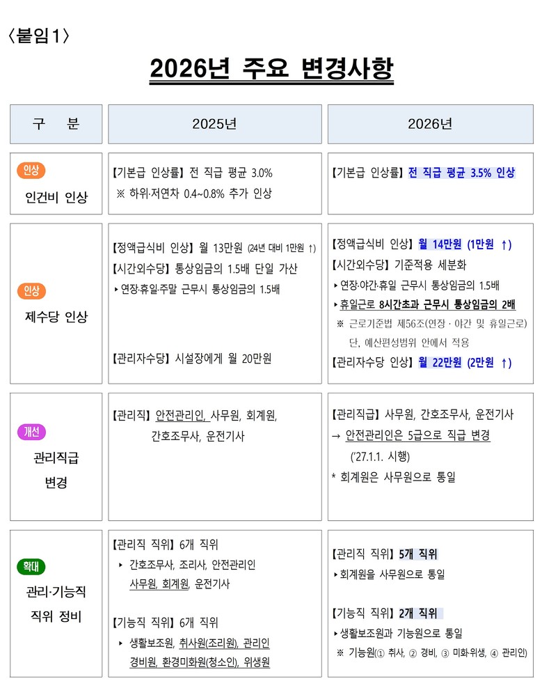 - 정액 급식비(1만원)‧관리자 수당(2만원) 인상… 시설 안전관리인 승급 체계 개선