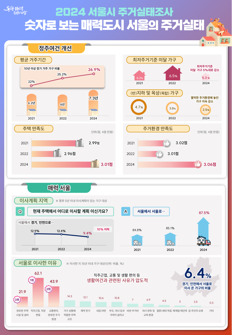 <평균 거주기간 늘고 반지하 거주 감소…서울 정주여건 전반 개선>