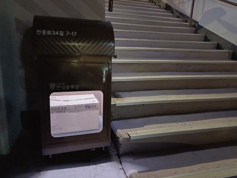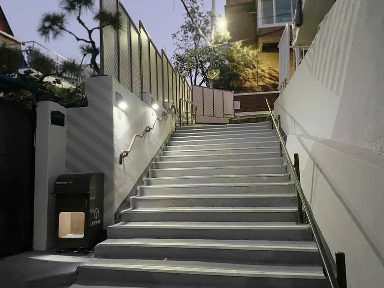 ‘안심택배함’은 천호3동 범죄예방 인프라 구축사업의 일환으로 개발된 시설로, 센서 조명과 택배함을 결합하여 택배 절도 위험을 줄이고 야간 보행자의 안전을 강화하는 특징이 있다. 실제로 천호동 저층 주택가에 설치된 이후, 택배 절도 건수가 약 66% 감소하는 효과를 거뒀다. 디자인은 강동구를 상징하는 빗살무늬 패턴을 적용하고, 골목 경관과 잘 어우러지는 간결한 컬러로 생활 공간의 미관을 개선했다.