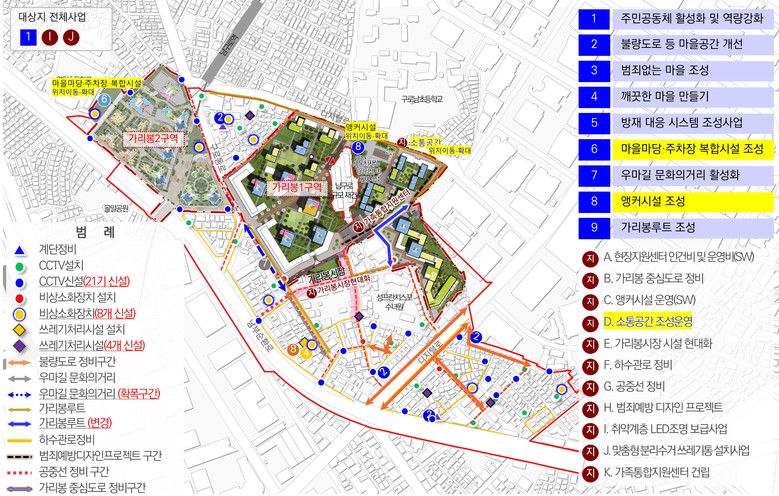CCTV 및 쓰레기 처리시설은 철거되는 구역 외곽에 신설해 생활안전과 위생 수준을 높인다.
