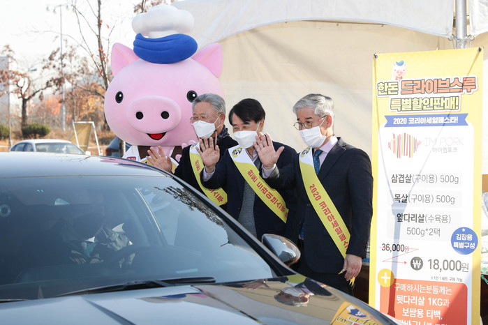 같은 날 행사장에서는 한돈자조금관리위원회와 대한한돈협회 주관으로 ‘한돈 드라이브스루 할인행사’가 열렸다. 한돈 판매촉진과 뒷다리살 홍보를 위해 열린 이번 행사엔 총 3kg한돈 꾸러미 2천개가 18,000원에 제공됐다. 1인 1개 한정으로 판매되는 한돈 꾸러미를 얻기 위해 경마공원 주차장은 일찌감치 차량행렬이 이어졌고 4시간 만에 완판되는 인기를 보였다.