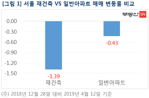 투자재적 성격이 강한 재건축 아파트는 정부 규제책에 따라 가격 변동성이 더 크게 나타나는데, 실제로 올 들어 서울 재건축 아파트값은 1.39% 떨어져 같은 기간 일반아파트가 0.43% 하락한 것에 비해 낙폭이 3배 가량 큰 것으로 나타났다.