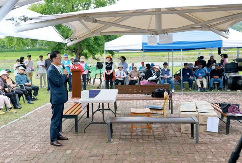[대전 세계타임즈=이채봉 기자] 대전시의회 조원휘 의장은 16일 갑천 유성구 그라운드골프장(봉명동)에서 개최된 제4회 유성구청장배 그라운드 골프대회에 참석해 부상 없는 대회 진행을 기원하며, 건강하고 활기찬 생활체육 모범도시 대전 구현을 위한 지원을 약속했다.