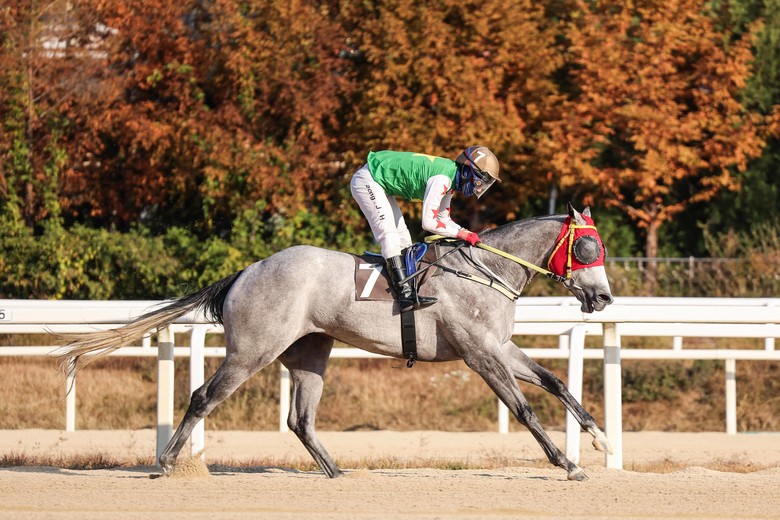 [세계타임즈 = 송민수 기자] 지난 10일, 한국마사회(회장 정기환) 렛츠런파크 서울 제6경주 ‘제13회 스포츠월드배(혼4등급, 연령오픈, 레이팅 50이하, 순위상금 6천만 원)’에서 ‘프린스데이(한국 포, 3세, 수, 회색, 레이팅 40, 양순희 마주, 김동철 조교사)가 1분 41초 3의 기록으로 정정희 기수와 함께 우승을 차지하며 가을 날씨 속 쌀쌀해진 렛츠런파크 서울을 뜨겁게 달궜다.