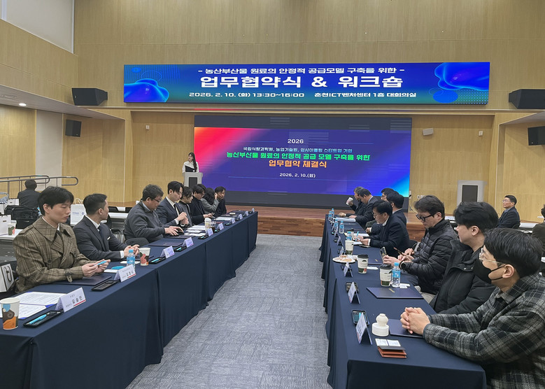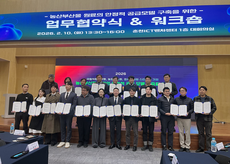 도 농업기술원은 10일 춘천ICT벤처센터에서 농촌진흥청 국립식량과학원, 강원·충북·전북·전남·경북·경남, 11개 스타트업이 참여하는 ‘농산부산물 원료의 안정적 공급 모델 구축 업무협약’을 체결했다고 밝혔다.