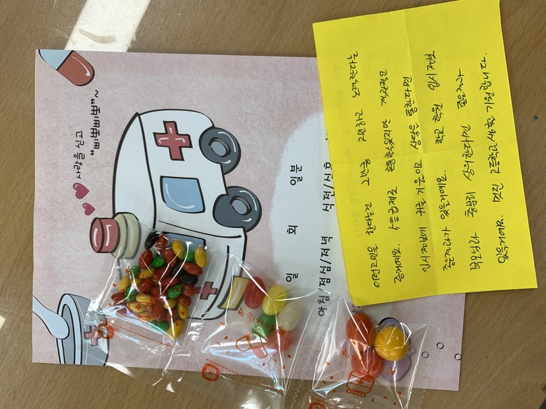 [광명시 세계타임즈=송민수 기자] 광명 충현중학교는 생명존중 교육주간을 맞이하여 학부모회와 또래상담부가 학생들의 고민을 상담해 주는 「마음약방」을 운영했다고 밝혔다. 「마음약방」은 ▲학생들이 고민을 상담 의뢰 ▲학부모회 회원들이 긍정적인 메시지를 담은 답글 작성 ▲또래상담부 학생들이 달콤한 간식을 처방 ▲고민을 상담한 학생에게 답글과 간식을 제공하는 의미 있는 행사이다.