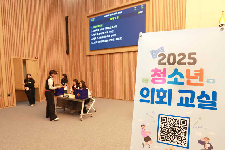 이날 학생들은 ‘교복착용 의무화 규정 도입 조례안’과 ‘학교 내 쓰레기통 배치 건의안’, ‘방학 전 교실 영화관 개최 건의안’ 등 3건의 안건을 심의‧의결했다.
