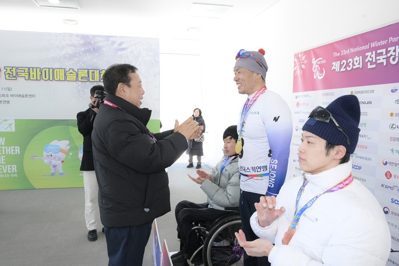 - 최민호 시장, 경기 현장 찾아 선수단에 격려와 응원 보내 - [세계타임즈=세종 이채봉 기자] 세종시장애인체육회(회장 최민호) 선수단의 신의현 선수(BDH 파라스)가 ‘제23회 전국장애인동계체육대회’에서 3관왕을 달성했다.