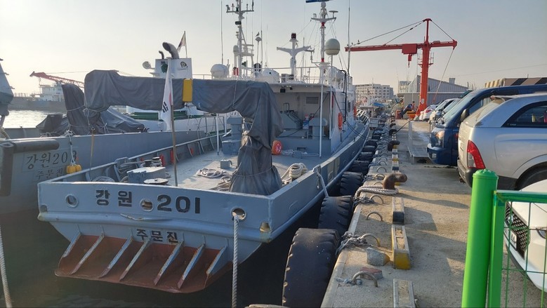 강정호 의원(속초1)이 정박 중인 어업지도선을 방문한 뒤, 담당 부서인 환동해본부에 어업지도선 운영계획을 요청하여 살펴본바, 한국해양교통안전공단에 요청하여 진행된 안전진단 검사(‘22. 7월) 결과 수리비용이 과다소요되는 진단을 받게 되어 대체건조 시행 및 이에 따른 건조비용 약 40억원이 필요한 것으로 파악됐다.