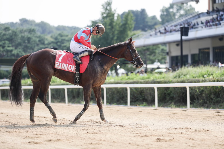 이어진 7경주로 개최된 ‘코리아컵’에서도 지난해 트로피를 들어 올린 일본의 ‘크라운프라이드’(일본, 5세, 수, 테루야요시다 마주, 신타니 조교사, 요코야마 기수)가 또다시 월등한 기량으로 챔피언 자리를 지켜냈다.