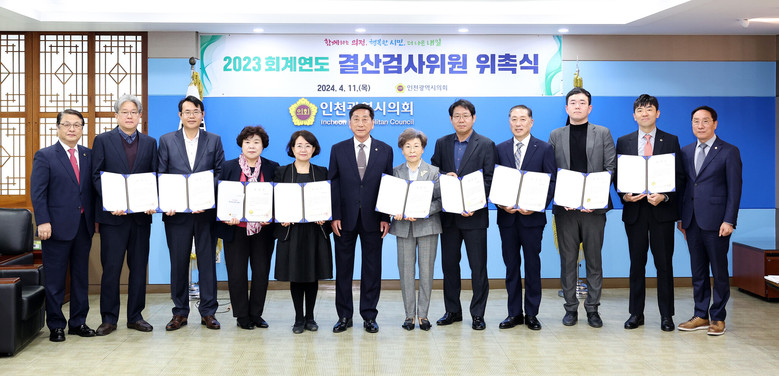 [인천 세계타임즈=심하린 기자] 인천광역시의회(의장 이봉락)는 11일 의회 본관 2층 의장 접견실에서 ‘2023회계연도 결산검사위원 위촉식’을 개최했다.