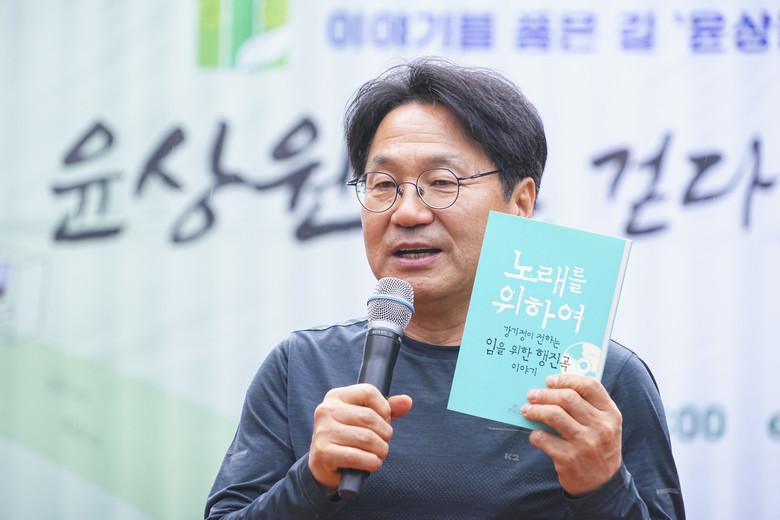 강 시장은 “10여년 전 임을 위한 행진곡이 논란이 되던 때 5·18과 임을 위한 행진곡을 제대로 알리기 위해 직접 쓴 이 책을 묘소에 드렸다”며 “윤상원 열사를 떠올리면 노래가 가장 먼저 떠오른다. 역사가 만들고 사람이 부른 임을 위한 행진곡에는 위안, 용기, 자신감, 평화, 나눔, 희생, 정의 등 모든 것이 들어있다”고 설명했다.