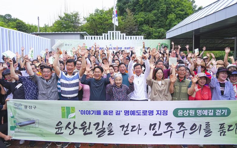 이날 행사는 윤상원 명예길을 걸으며 윤상원 열사의 숭고한 민주항쟁 정신을 기리고, 명예도로명 지정을 기념하기 위해 마련됐다.
