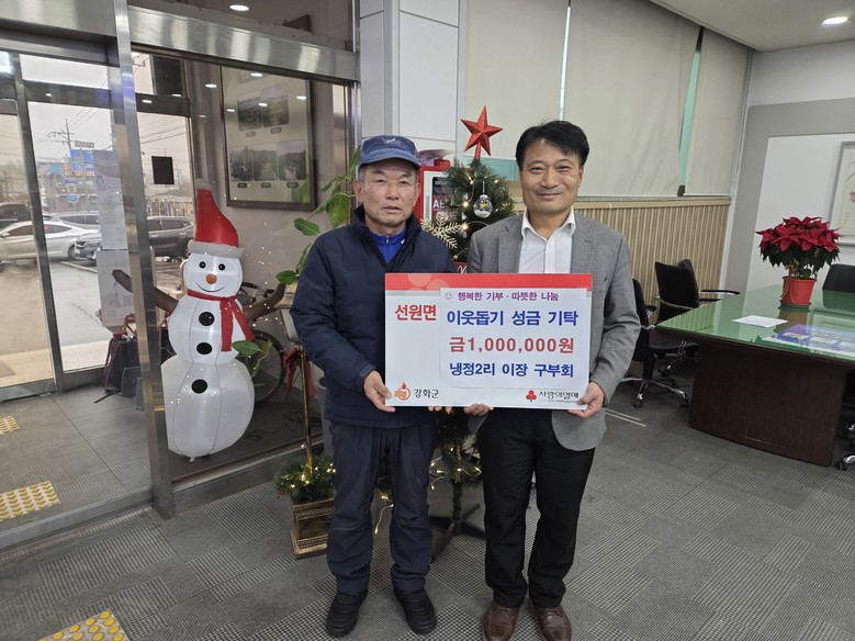 [강화군 세계타임즈=심하린 기자] 강화군 선원면(면장 이정실)은 지난 23일, 냉정2리 구부회 이장이 면사무소를 찾아 어려운 이웃을 위한 성금 100만 원을 기탁했다고 전했다.