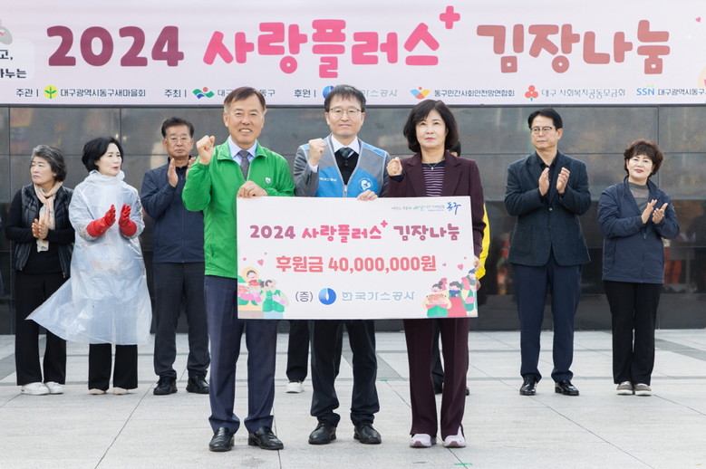이날 행사에는 심규헌 가스공사 상생협력처장을 비롯한 직원들과 대구동구청, 새마을협의회·부녀회 회원, 각급 봉사단체 회원 등 500여명이 함께 3,400포기 분량의 김장김치를 담갔다.