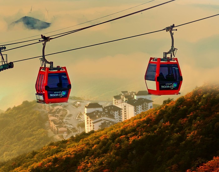 오투리조트 관광곤도라는 함백산 해발 1,420M까지 운행되는 동안 이용자가 눈앞에 펼쳐지는 함백산의 절경과 멋진 단풍을 감상 할 수 있다. 또한 타워콘도에서 스키장(곤도라 탑승장)까지 이동하는 리프트를 하행 운영 한다.