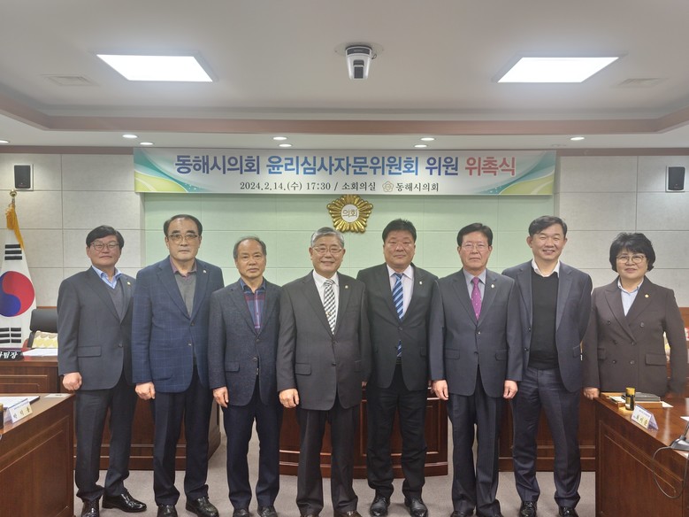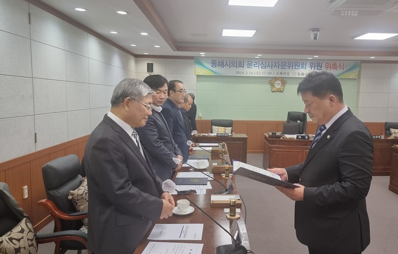 [동해시 세계타임즈=김민석 기자] 동해시의회(의장 이동호)는 2월 14일(수) 시의회 소회의실에서 윤리심사자문위원회를 개최하고 5명의 위원을 위촉했다.