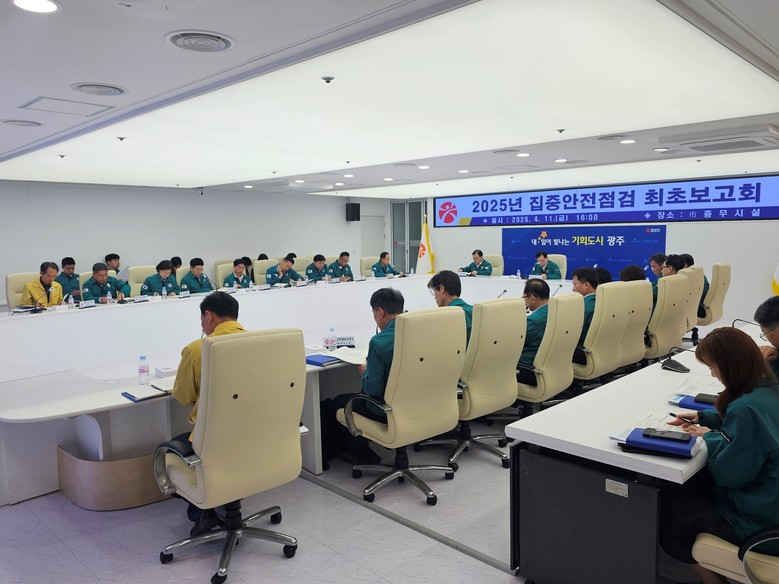 광주시는 안전점검 돌입에 앞서 11일 시청 충무시설에서 ‘집중안전점검 최초보고회’를 개최했다. 이날 회의에는 광주시와 자치구, 산하 공사·공단 등 19개 기관 관계자들이 참석했다.