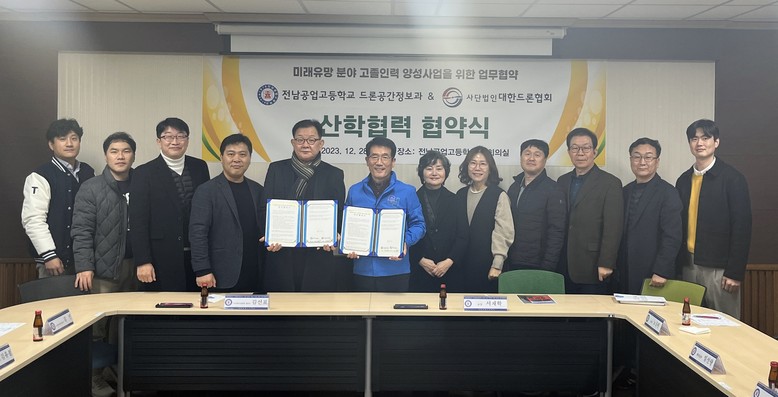 [전남 세계타임즈=손권일 기자] 전남공업고등학교가 지난 12월 28일 ‘미래유망분야 고졸 인력 양성’을 위한 (사)대한드론협회와 업무협약을 체결했다.