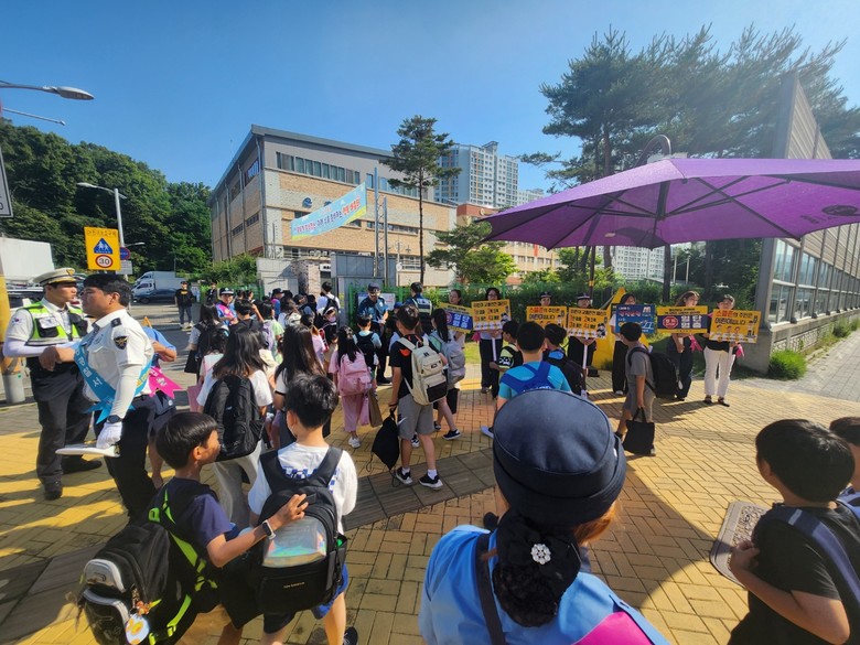 또한 본 행사는 안전하게 건널목 건너기·운전자 신호등 지키기 등에 대한 피켓 홍보 및 시범 보이기, 교통안전 기념품 배부, 통학로 및 학교 주변 위험 요소 점검 등을 위해 녹색학부모와 경찰관이 함께 참여하였다.