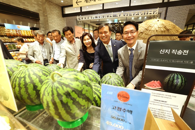 고창군은 올해 지리적표시제 등록 명품수박 첫 출시에 맞춰 대대적인 홍보·판촉활동을 진행했다. 지난 5월31일 열린 신세계백화점 본점 앞 경매 행사에선 고창수박 한 덩이가 500만원에 낙찰되는 진기록을 세웠다. 당시 현장에는 언론과 유통업계 관계자들이 모여들며 명품 고창수박에 대한 관심을 실감케 했다.