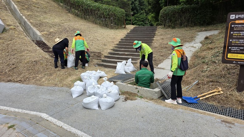 이날 도담동 자율방재단원들과 도담동 직원들은 공원 주변의 배수로에 쌓인 낙엽과 쓰레기, 토사 등 물 흐름을 방해하는 이물질을 집중적으로 제거했다.