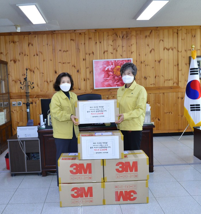 [서구=세계타임즈 한성국 기자] 광주 서구의회는 코로나19 확산방지와 예방을 위해 방역 마스크 2천매를 대구 서구의회에 전달했다.