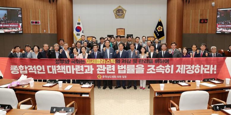[충남 세계타임즈=백택기 기자] 충남도의회는 24일 제352회 정례회 4차 본회의에서 방한일 의원(예산1·국민의힘)이 대표 발의한 ‘미세플라스틱 저감‧관리 위한 법안 마련 촉구 건의안’을 채택했다.