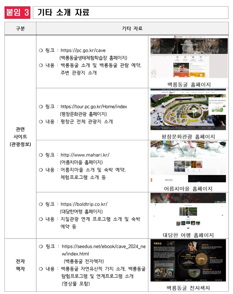 현재 <백룡동굴>과 <어름치마을>은 평창군, 연구기관, 마을이 협력하여 지질·생태·문화자원을 연계한 지역 특성화 지질관광 프로그램을 공동 운영하고 있다.