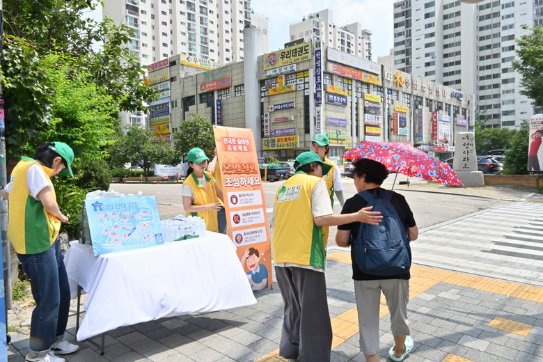 이번 활동은 인근 보행자와 배달 기사, 상인 등 야외 활동이 잦은 시민들을 대상으로 진행됐으며 생수 500병과 원형 부채 1000개를 시민들에게 전달했고, 폭염 시 건강 관리 요령과 무더위쉼터 위치 등 실질적인 정보를 안내하는 시각 자료도 함께 배포했다.