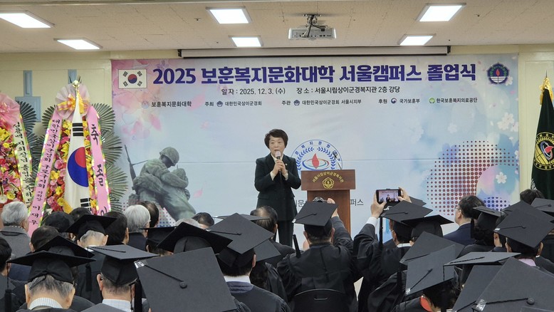 [서울 세계타임즈=이장성 기자] 서울특별시의회 보건복지위원회 신동원 부위원장(국민의힘, 노원1)은 12월 3일(수) 열린 2025년 보훈복지문화대학 서울캠퍼스 졸업식에 참석하여 졸업생 117명의 새로운 출발을 축하하고, 국가유공상이자 및 보훈가족의 평생교육 참여를 격려했다.