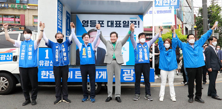 [세계타임즈 = 이장성 기자] 채현일 영등포구청장 후보를 지원하기 위해 더불어민주당 지도부와 신·구 유력인사들이 총출동했다.