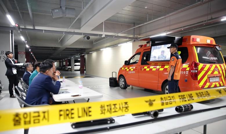 먼저 건소위는 내포신도시에 위치한 아파트 지하주차장 전기자동차 화재 대응훈련 및 화재진압 시연회에 참석했다. 이날 소방본부는 현장에서 전기자동차 화재진압 시연(질식소화포‧상방방사관창‧워터포켓)을 통해 화재진압 기술을 선보였다. 시연회는 최근 친환경 전기자동차 증가 추세에 따라 공동주택 지하주차장 등 전기자동차 화재 발생 시 효율적인 대응을 위해 마련됐다.