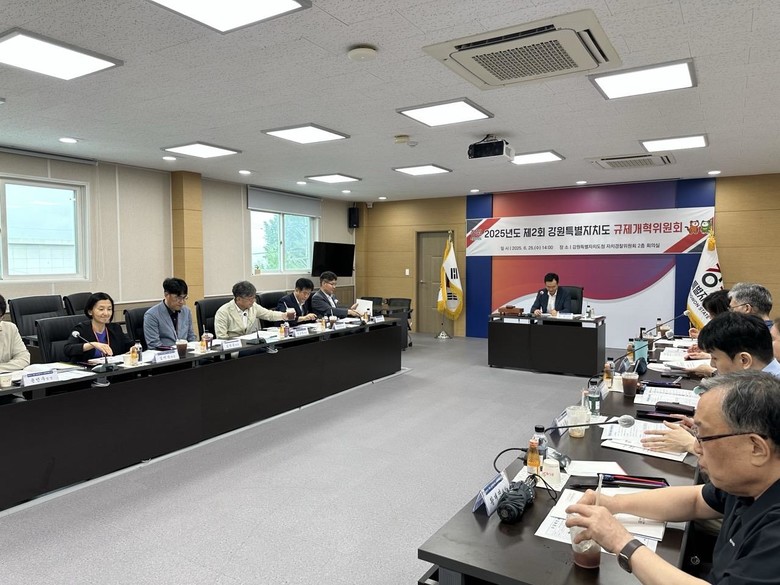 [강원도 세계타임즈=김민석 기자] 강원특별자치도(도지사 김진태)는 6월 25일(수) 오후 2시, 도청 자치경찰위원회 2층 회의실에서 「2025년도 제2회 강원특별자치도 규제개혁위원회 회의」를 개최했다고 밝혔다.