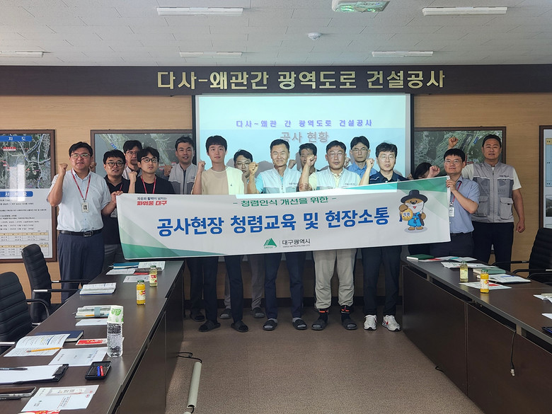 특히, 7월 28일(월) 실시한 현장 교육에서는 대구시 건설본부 담당자와 함께 청렴캠페인을 펼치며, 청렴문화 실천에 대한 결의를 다지는 시간을 가졌다.