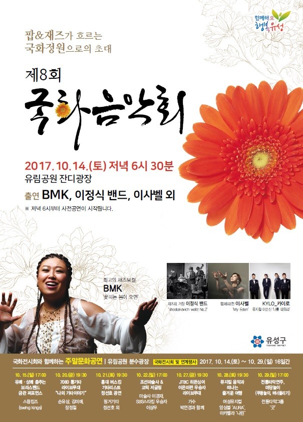 매년 3천만 송이 국화전시회 기간에 맞춰 개최되고 있는 국화음악회는 해가 갈수록 시민의 관심과 참여가 높아지고 있는 가운데, 올해는 특히 국내 정상급 재즈 공연팀과 팝페라 가수를 초청해 깊어가는 가을 밤 낭만을 선사할 것으로 기대를 모으고 있다.