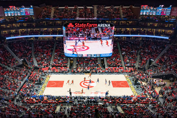 '스테이트 팜 아레나(State Farm Arena)'에 스마트 LED 사이니지를 활용해 초대형 스크린을 설치했다.