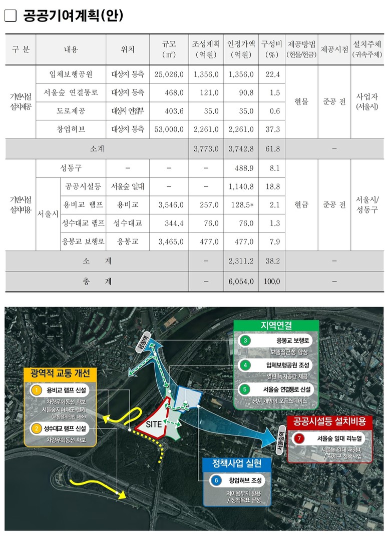 - 6천억원 규모 공공기여, 성수 일대 교통체계 개선 및 ‘유니콘 창업허브’ 조성에 투입