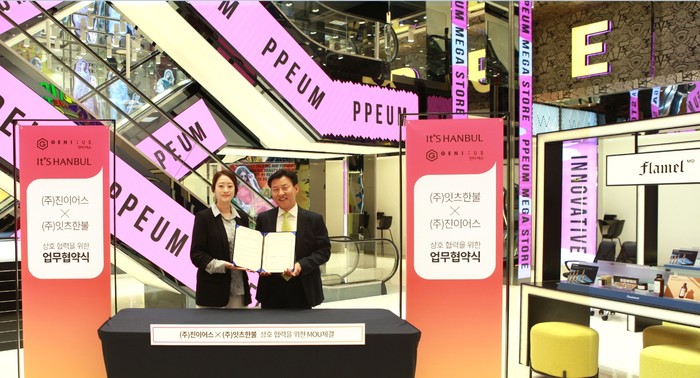 ㈜진이어스 김민경 대표는 “대한민국 화장품의 역사를 이끌어온 ㈜잇츠한불과 업무협약을 맺게 돼 기쁘며, 예쁨주의 쁨의원이 가진 네트워크와 ㈜잇츠한불의 기술력을 더해 양사간 시너지를 확대할 수 있는 뜻깊은 기회”라고 밝혔다.