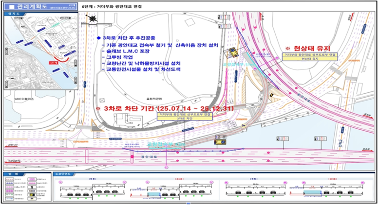 | ▲ 교통통제 계획도면(기존 광안대교 교통통제) |