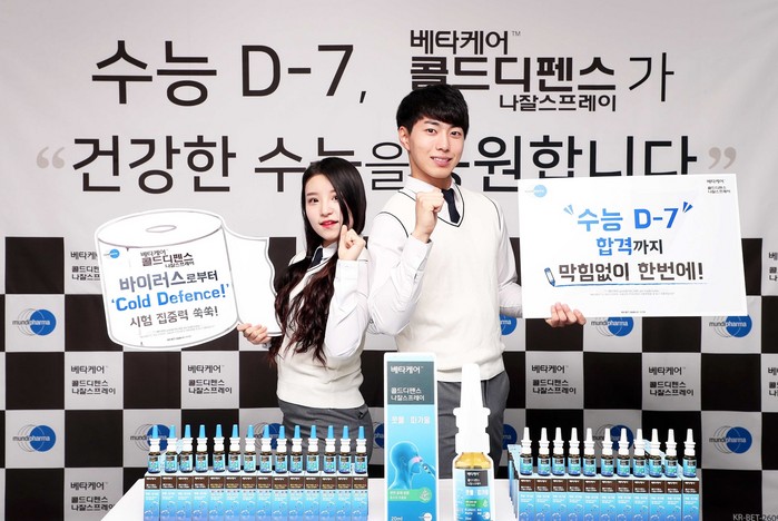 | ▲ 한국먼디파마 베타케어™ 콜드디펜스 나잘스프레이가 수능 D-7을 맞아 합격까지 콧물과 코 따가움 없이 막힘없이 한번에 갈 수 있도록 응원했다. |