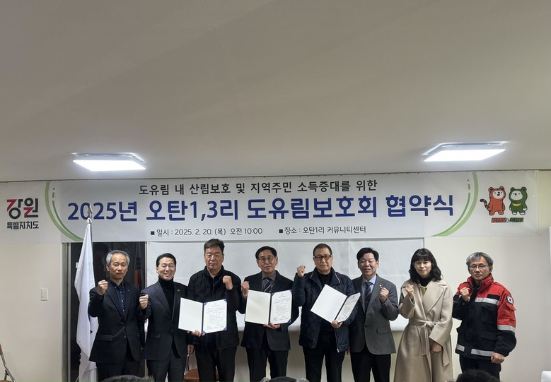 [강원도 세계타임즈=김민석 기자] 강원특별자치도 산림과학연구원(원장 홍창수)은 2월 20일(목), 춘천시 사북면 오탄1리 커뮤니티센터에서 오탄1·3리 마을과 ‘도유림 보호협약’을 체결했다고 밝혔다.