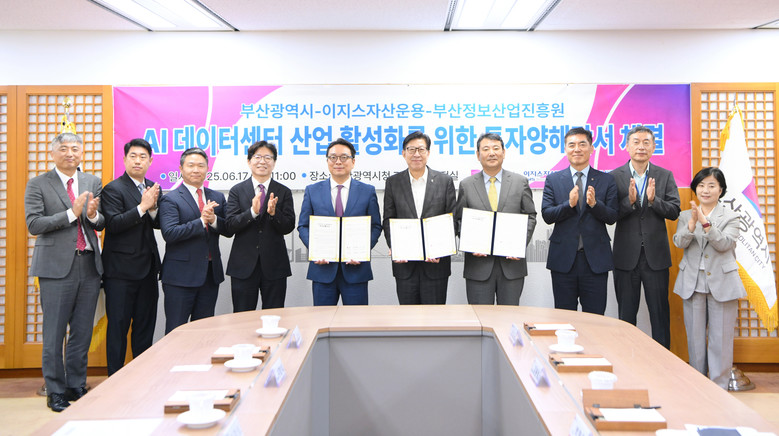 ◈ 지역인재 우선 고용, 지역건설산업자 참여 확대 등으로 지역 경제 활성화에도 상호 협력 약속 [세계타임즈=부산 이용우 기자] 부산시(시장 박형준)는 오늘(17일) 오전 10시 시청 국제의전실에서 이지스자산운용㈜(리얼에셋부문 대표 이철승)과 1조 8천억 원 규모의 '인공지능(AI) 데이터센터 산업 활성화 투자양해각서'를 체결한다고 밝혔다.