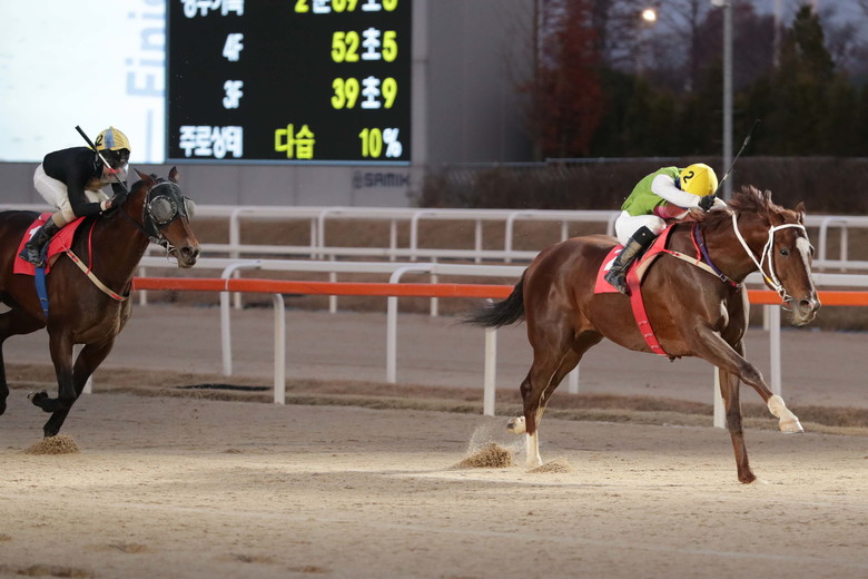 올해 7, 10월 차례로 출전한 2000m 1등급 경주에서 연달아 우승하며 물오른 기량을 보여주고 있다. 작년 ‘대통령배’에서는 아쉬운 3착에 머물렀으나, 최근 2000m 경주 기록을 작년보다 앞당기며 이번 대회 전초전을 성공적으로 마친 상태다. 장거리 주력마로서, 그동안 2000m 경주에 총 7회 출전하여 1착 4회, 3착 3회로 연승률 100%를 기록하고 있다. 2000m 출전경험과 우승 횟수로만 보면 출전마 중 가장 우수하다고 할 수 있다. 다른 우승 후보마들에 비해 대상경주와 같은 큰 대회 우승 경험이 부족하다는 점이 변수이긴 하나, 2000m 강자로서의 실력을 이번 대회를 통해 확실히 입증할 수 있을지 이목이 집중된다.