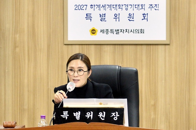 [세종 세계타임즈=이채봉 기자] 세종특별자치시의회(의장 이순열) 2027 하계세계대학경기대회 추진 특별위원회(위원장 김현미, 이하 특위)는 22일 제4차 회의를 개최하고 특위 활동기간 연장, 시청 업무보고 청취, 대회 추진 촉구 방안에 대해 논의했다.