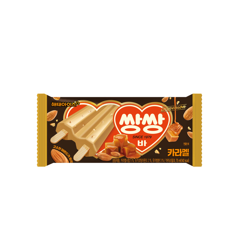 이번에 출시하는 쌍쌍바 카라멜은 해태아이스 대표 브랜드인 ‘쌍쌍바’의 고급 아이스 바 버전이다. 진한 카라멜 믹스를 사용하여 부드러운 풍미를 입안 가득 느낄 수 있으며, 슈가코팅 아몬드를 첨가하여 고소한 맛과 너티함을 동시에 담았다. 또한 금색과 갈색이 조화를 이루는 제품 패키지 디자인에는 ‘Superior’라는 문구를 삽입하여 고급스러움을 강조했다.
