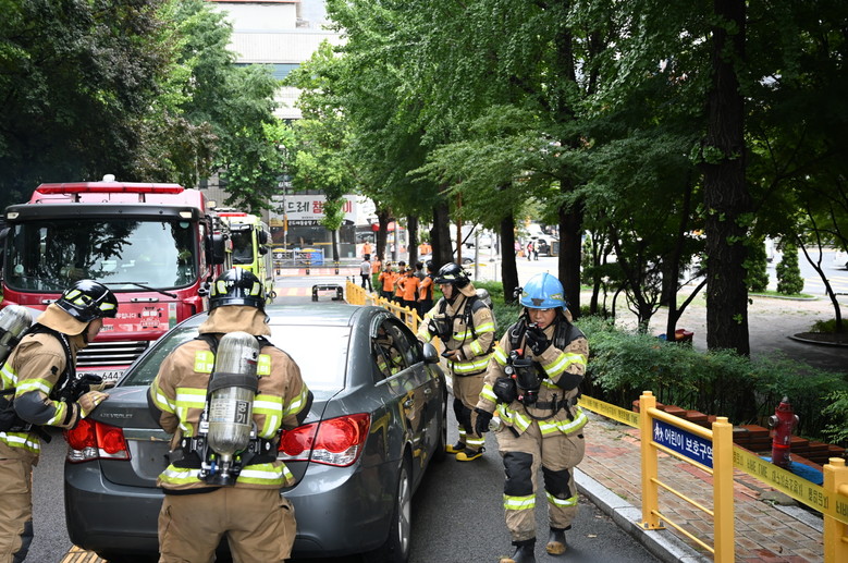 이날 훈련은 불법 주·정차 차량으로 현장 진입이 불가능한 상황을 가정해 ▲소방차를 이용한 강제 돌파 ▲불법 주·정차 차량의 창문을 파괴 후 소방용수 확보 등 실제 대응 절차를 시연하는 방식으로 진행됐다.